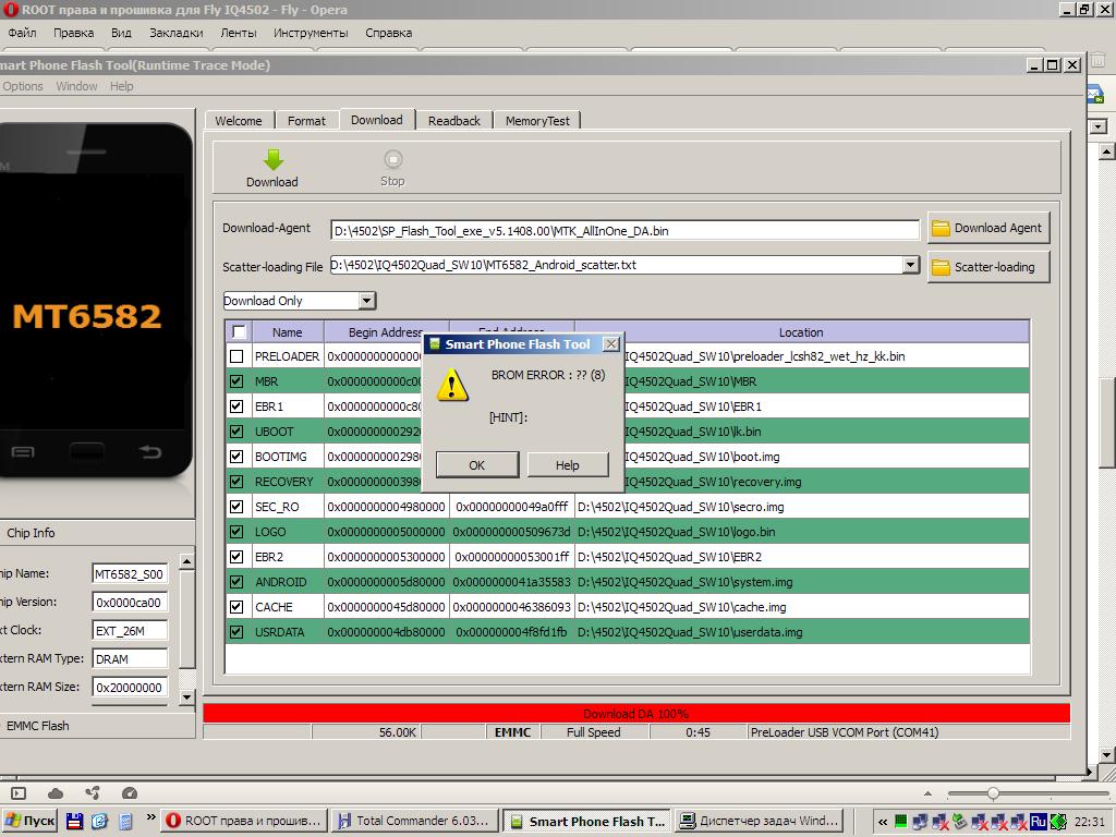Примечание: Если выскакивает ошибка в SP Flash Tool: