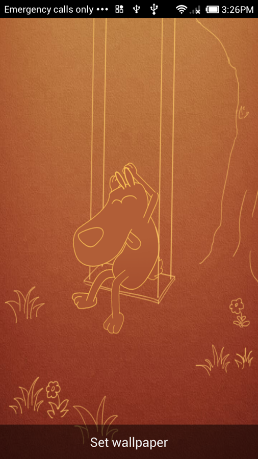 Смешная мультяшная собачка летит на воздушных шариках высоко в небе мимо облачков, радуги, солнышка, которые также нарисованы с забавной мимикой. Обои выглядят интересно и не особо навязчиво!