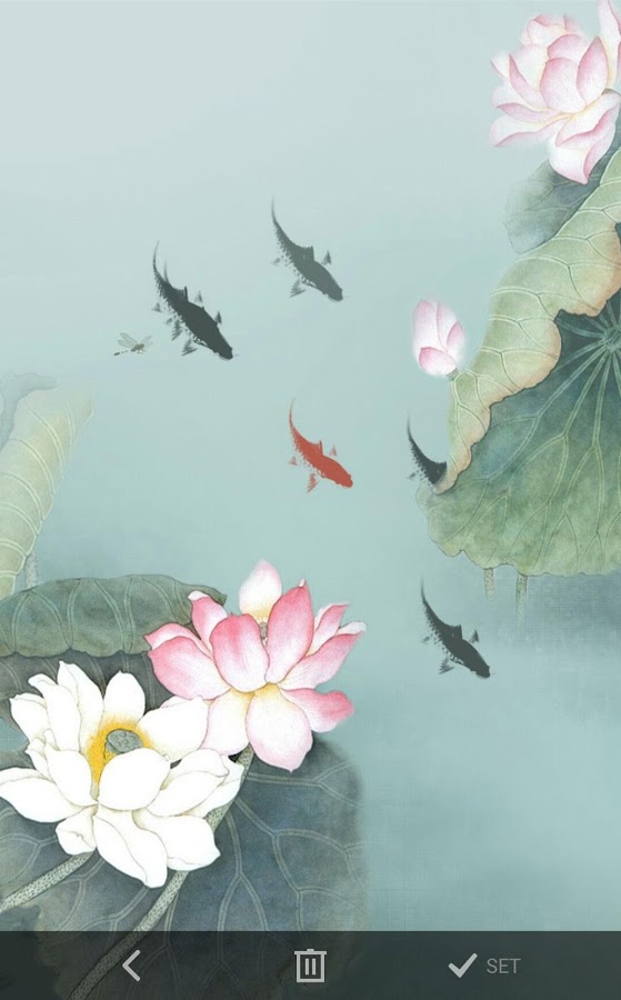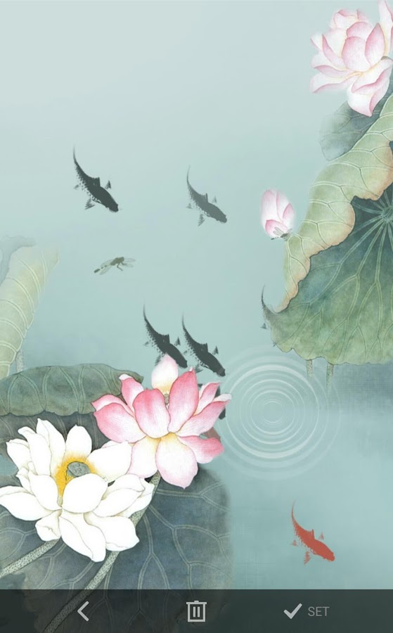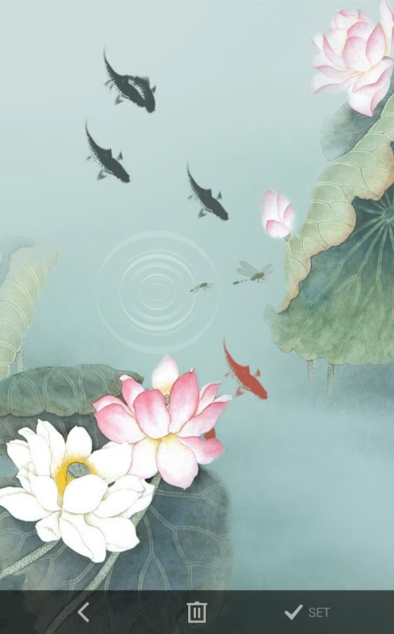 Девять замечательных рыбок на живых обоях от разработчика pictograph 3D dev team. Наблюдайте за их движением, жизнью в тихом пруду с цветущими кувшинками. Обои выглядят ненавязчиво и очень красиво.