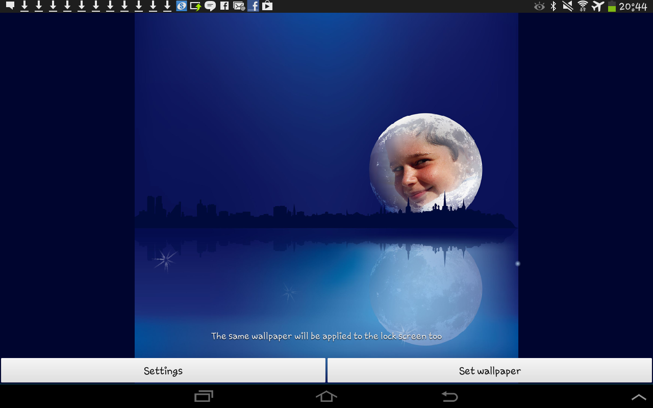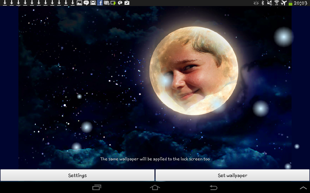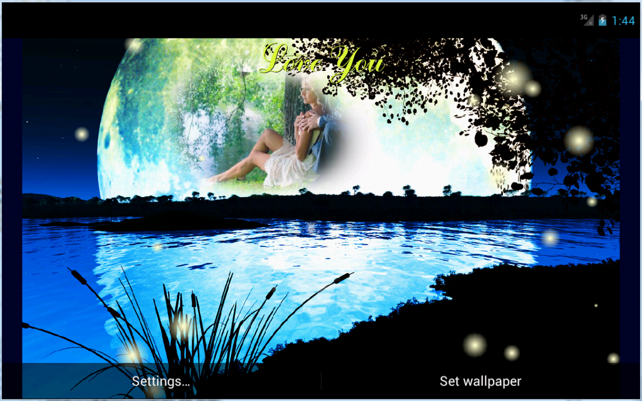 Лунные обои, в которых у вас будет возможность добавлять портрет вашего любимого человека или своей семьи. При разблокировки экрана по нему будут порхать феи или летать сердечки в зависимости от выбранных настроек, а также вы сможете написать текст или оставить послание. Установить эти обои очень легко необходимо зайти в меню и выбрать нужные обои.