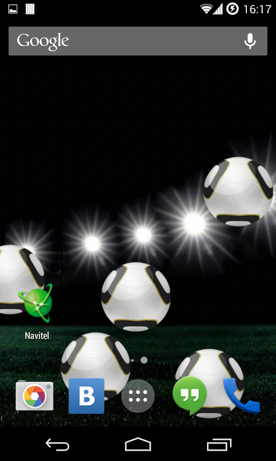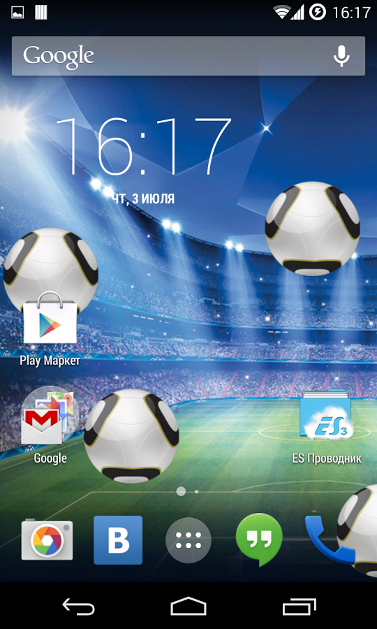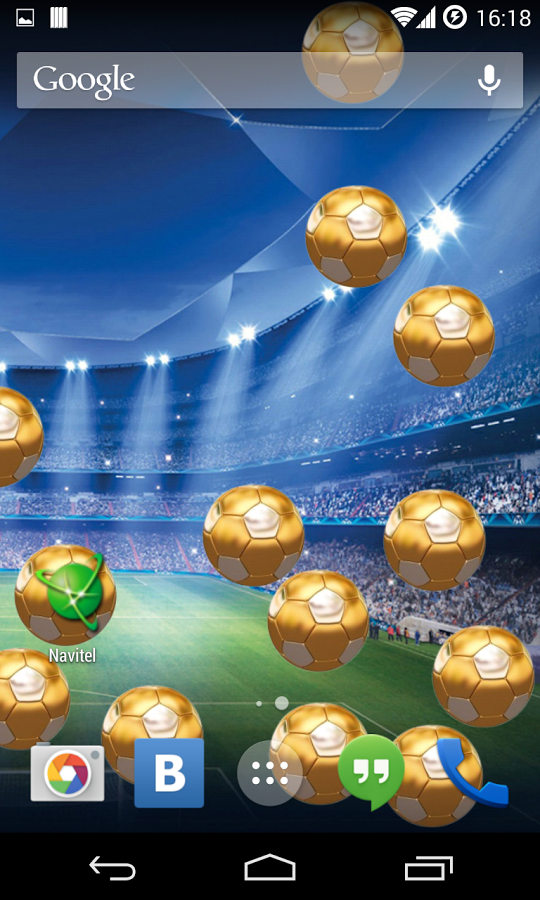 Живые обои на футбольную тематику, при установке которых у вас на экране появятся футбольные мячи. Живые обои сделанные на движке OpenGL2 с управление FPS за счет этого они не работают если ваш телефон не активен или занят другими приложениями что значительно экономит заряд вашей батареи и вы ее будет тратить только на свои нужды. Обои порадуют вас отличным качеством картинки и анимации, а также у вас будет возможность изменять количество и цвет футбольных мячей.