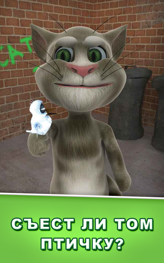 Том ― это твой любимый домашний кот, который реагирует на твои прикосновения и повторяет забавным голосом все, что ты скажешь. Ты можешь его погладить, толкнуть его или схватить его за хвост. Записывай свои собственные видеозаписи с Томом, сохраняй их в свою библиотеку, делись ими на YouTube и Facebook, а также отправляй по электронной почте.