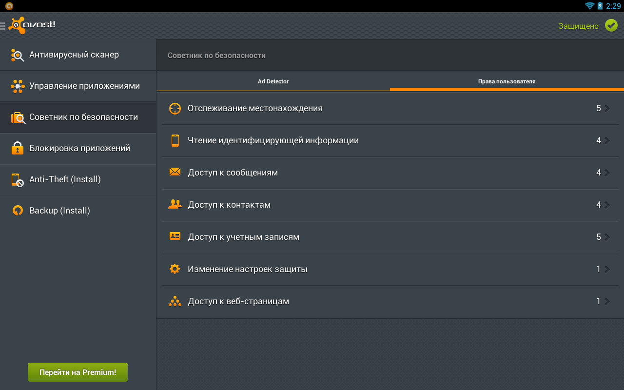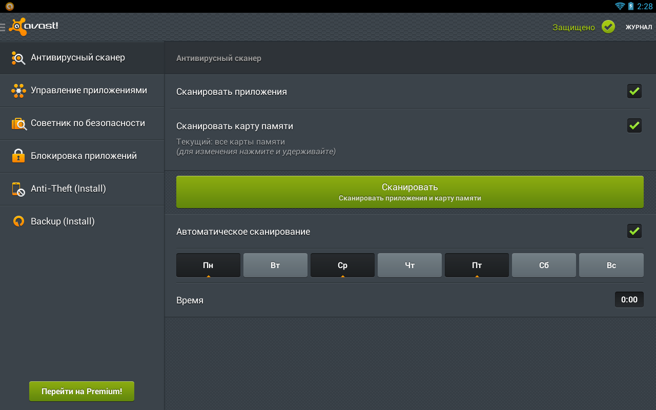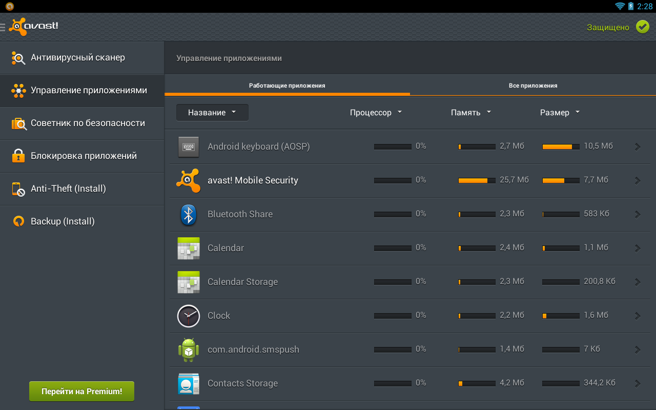 Бесплатный антивирус для андроид обеспечит максимальную защиту для вашего андроид смартфона или планшета. С помощью удаленного доступа приложение защитит ваше мобильное устройство от вирусов, интернет угроз, от вредоносного программного обеспечения ,от потери данных и несанкционированного доступа к ним. Так же avast! Mobile Security включает в себя брандмауэр, веб-экран и функцию анти-вор (Anti-Theft).