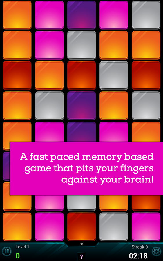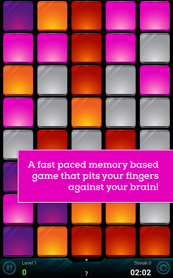 Игра в жанре "Найди пару". В отличии от аналогов в игре ведется обратный отсчет времени и все фигурки показываются одновременно через равные промежутки времени.