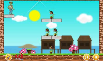 «Зомби Против Растений Рикошет» - android головоломка сочетающая в себе элементы аркады. При прохождении этапов данной игры вы должны будете противостоять надоедливым сорнякам, заполонившим все в округе, а играть вам предстоит от имени зомби, причем прекрасно вооруженного. На каждом из имеющихся уровней игры вам будет доступно лимитированное количество выстрелов, старайтесь стрелять по надвигающимся растениям, используя свойства рикошета, т.е. пуля, отскочившая от стены, за один раз может поразить несколько сорняков. На данный момент головоломка насчитывает в совеем арсенале полторы сотни уровней сопровождаемых забавным геймплеем.