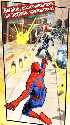 • Первый аркадный веб-раннер с Человеком-Пауком! Качайтесь на паутине, бегайте и сражайтесь в 5 районах Нью-Йорка!