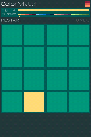 Просто проведите пальцем по экрану, чтобы переместить цветные плитки. Когда двое из них соприкасаются, они сливаются в один цвет. Вы можете видеть цветовую гамму прямо над игровым полем наряду с вашим лучшим найденным цветом.