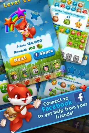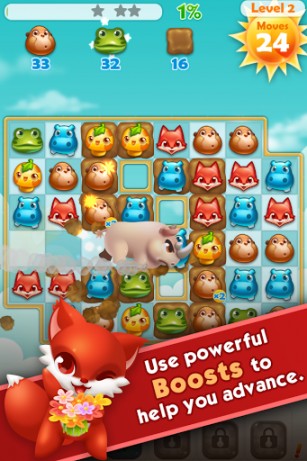 Forest Mania - детская игрушка три в ряд, в которой нужно собирать фигурки животных, складывая их в цепочки по три или более фигурок в ряд. Чем больше фигурок вы соберете, тем больше будет комбо и как следствие заработанных очков. Проходите большое количество уровней, используйте дополнительные бонусы и пробуйте себя в бесконечном геимплее.