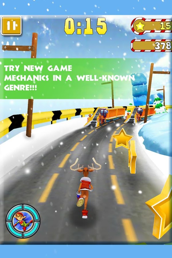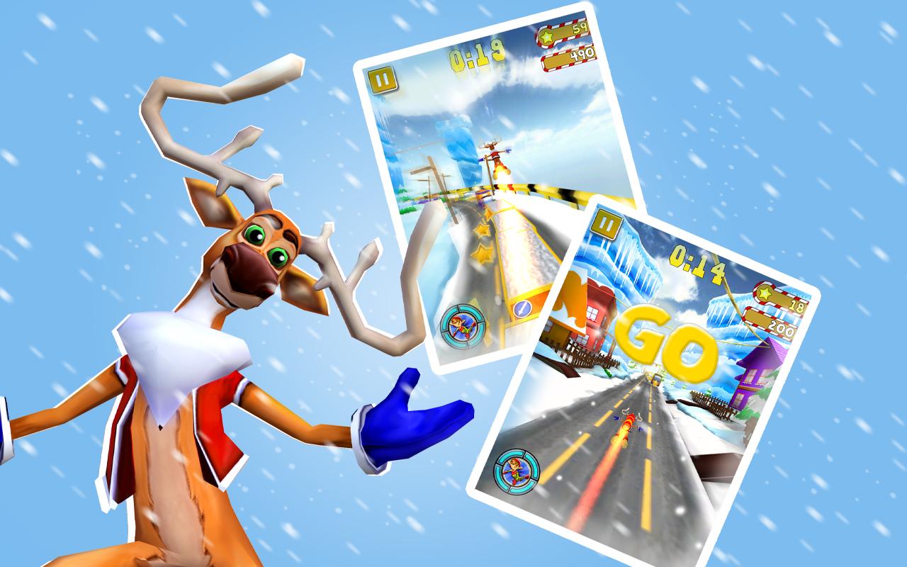 Веселый раннер на андроид, где вам предстоит помочь оленю Санта-Клауса догнать его сани. Наш олень оказался нерасторопным и опоздал к отправке саней, и теперь ему необходимо преодолеть большое количество препятствий и огромное расстояние, чтобы вернуться в упряжку. Бегайте, прыгайте и уворачивайтесь от препятствий при этом не забывайте собирать бонусы, оставленные для вас эльфами помощниками Санты, с помощью них вы сможет летать на ракете и кататься на мопеде. Игра порадует поклонников такого жанра и не оставит равнодушными ни кого.