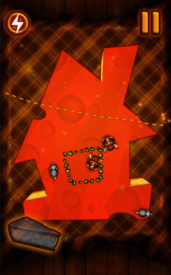 Cut the cheese — отрезайте от сыра куски, свободные от мышей, которые хаотично бегают по экрану. Мыши носятся по головкам сыра, не останавливаясь ни на секунду, в этой игре для Андроид. Выбирайте момент и проводите пальцем по экрану, чтобы отрезать от сыра кусок, на котором нет мышей. Отрезая кусок за куском, оставьте мышам как можно меньше сыра. Используйте различные бонусы и способности, чтобы эффективнее бороться с грызунами. Встретьтесь с разными видами мышей и выиграйте эту веселую битву за сыр!