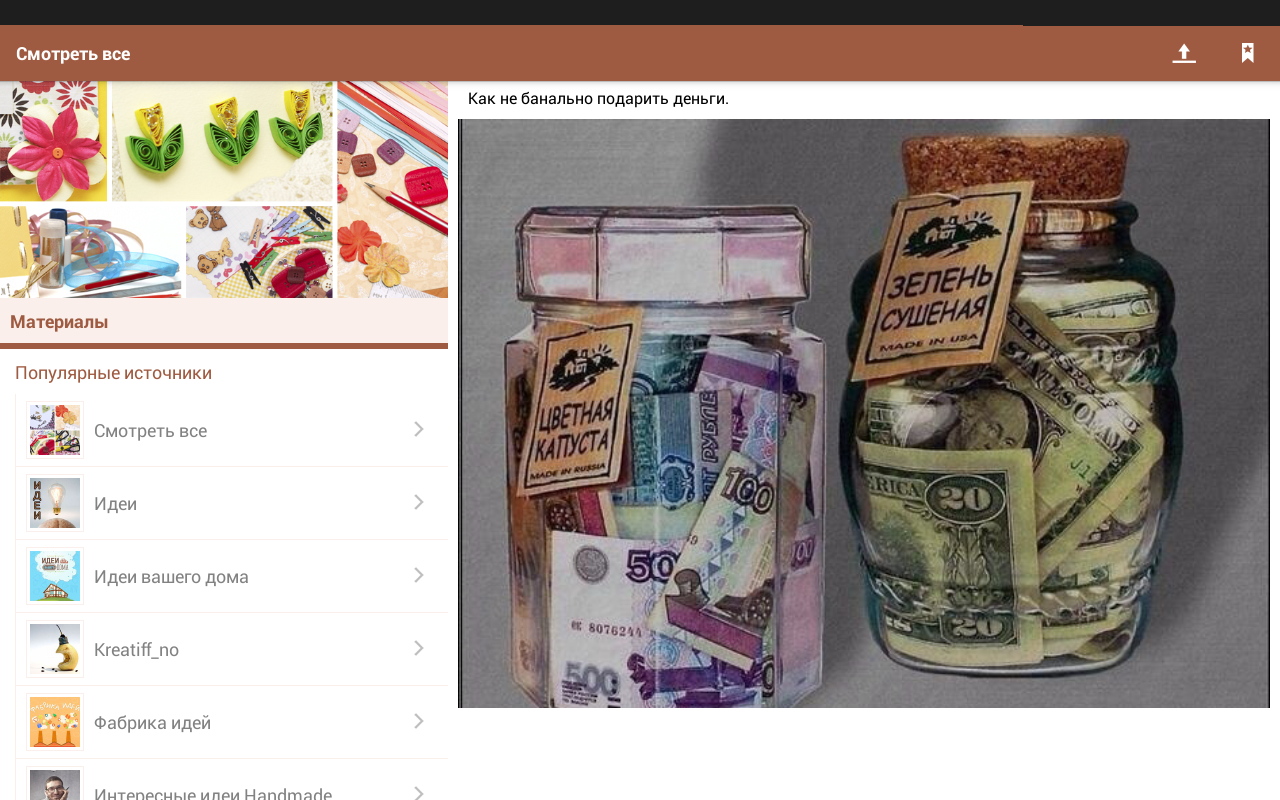 В этом приложении собраны интересные и оригинальные идеи на все случаи жизни - яркий дизайн интерьеров и экстерьеров, необычные элементы декора, креативные подарки, поделки своими руками, переделки старых вещей, интересные аксессуары, всякие милые штучки handmadе и многое-многое другое. Всем любителям оригинального, а также тем, кто любит делать что-то своими руками, добро пожаловать в наше приложение Креативные идеи для жизни.
