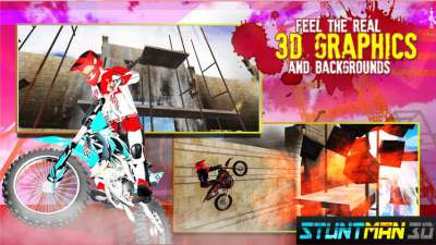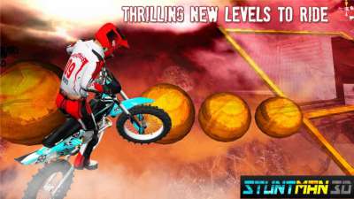 STUNTMAN 3D - потрясающие гонки на мотоциклах для андроид планшетов. Суть игры очень проста, на своем мощнейшем байке вам придется выполнять самые разнообразные трюки. Если вы любитель мотоциклов и экстрима, то эта игры именно для вас. В каждой из миссий игры, вы будет в роли каскадера, который рискует своей жизнью выполняет смертельные трюки. Докажите всему миру что вы один из лучших каскадеров своего времени, пройдя самые сложные препятствия. Апгрейдите своего сппортивного героя приобретая ему кипу, шлема, а также вы можете купить себе мотоцикл.