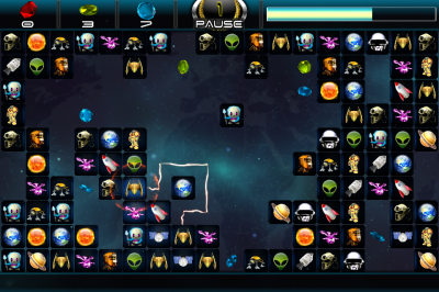 Находи и уничтожай пары одинаковых картинок, соединить которые можно одной, двумя, или тремя линиями. Успей очистить поле в отведённое время и получи награду.