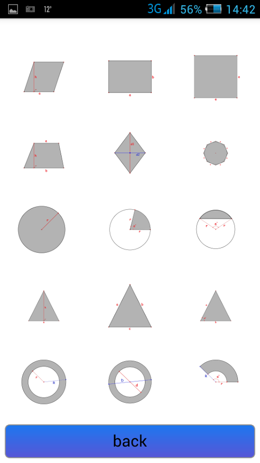 Приложение рассчитывает площадь и объём геометрических фигур. Теперь не придётся вспоминать математические формулы, достаточно выбрать объект, указать необходимые данные для расчета и нажать на кнопку рассчитать! Приложение включает в себя самые необходимые геометрические фигуры, которые используются в повседневной жизни: 15 фигур для расчёта площади, 15 тел для расчёта объёма. Просто, быстро, качественно.