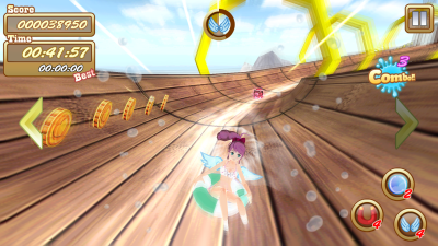Bikini girl - красивые девушки, одетые в купальники, участвуют в веселом пляжном турнире по гонкам на аттракционах в аквапарке. Помогите им победить. Выбирайте понравившуюся девушку и принимайте вместе с ней участие в турнире в этой игре для Андроид. Управляйте движением персонажа, несущегося по извилистой горке в аквапарке. Собирайте монеты и различные бонусы, которые помогут Вам победить. Например, крылья позволяют взлететь на некоторое время, магнит собирает все монеты на пути и т.д. Избегайте препятствий и опасностей, таких, как осьминоги и т.п.