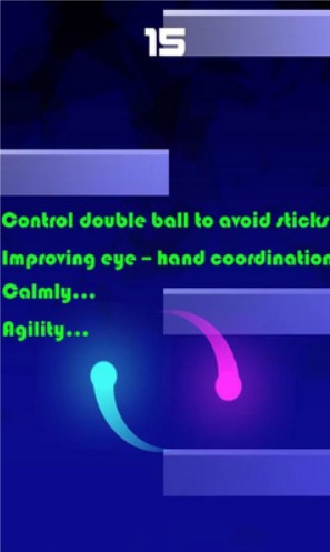 Double ball - управляйте двумя шариками, которые двигаются вперед по маршруту, полному разных препятствий. Шарики всегда находятся на постоянном расстоянии друг от друга. Вращайте шарики вокруг общего центра и поворачивайте их таким образом, чтобы ни один из них не врезался в препятствие. Препятствия появляются с разных сторон, а скорость движения увеличивается. Продержитесь как можно дольше, избегая столкновений с преградами. Практикуйтесь и устанавливайте новые рекорды. Тренируйте свою внимательность и скорость реакции в этой увлекательной игре для Андроид.