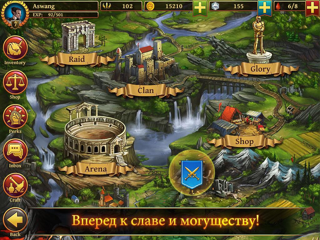 Киньте вызов другим игрокам в онлайн - арене, вторгайтесь в их земли, захватывайте их ресурсы и участвуйте в ежедневных турнирах, и быть может вы станете легендарным бойцом в Королевстве! Проводятся ежедневные турниры, выигрывайте и станьте легендарным бойцом в королевстве!