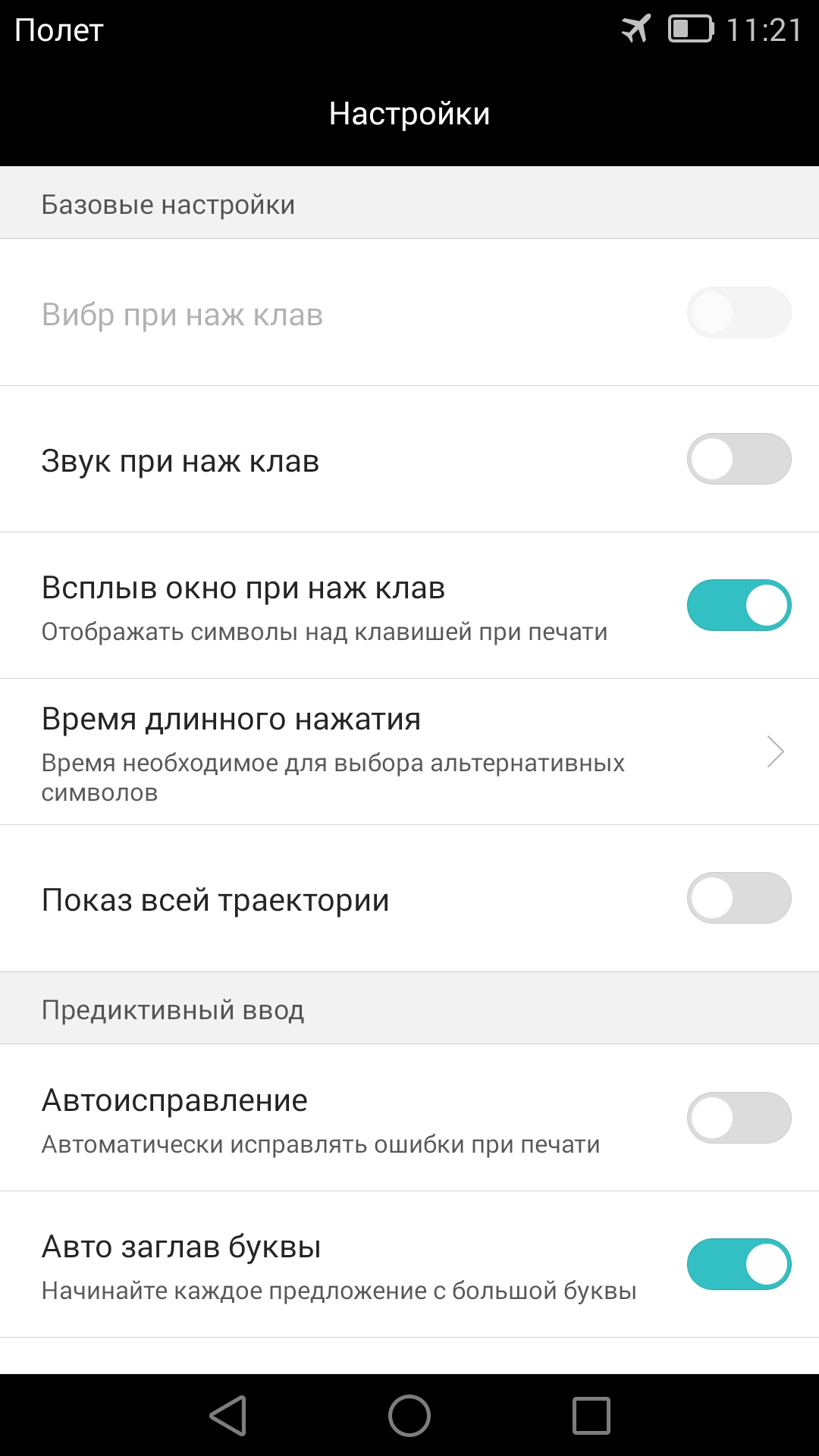 Клавиатур в смартфоне несколько — можно воспользоваться вариантом от Google, от Huawei или вовсе использовать Swype. Кому как удобнее.