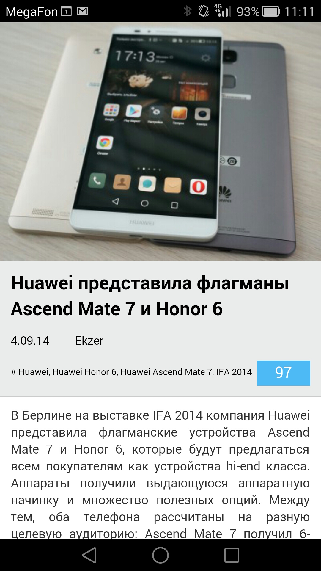 У инженеров компании Huawei получился на редкость удачный смартфон. Можно утверждать, что это один из лучших смартфонов на рынке. Ascend Mate7 мощный и способен долго работать, не нуждаясь в дополнительной подзарядке. Он хорошо «держится» за сеть и поддерживает LTE.