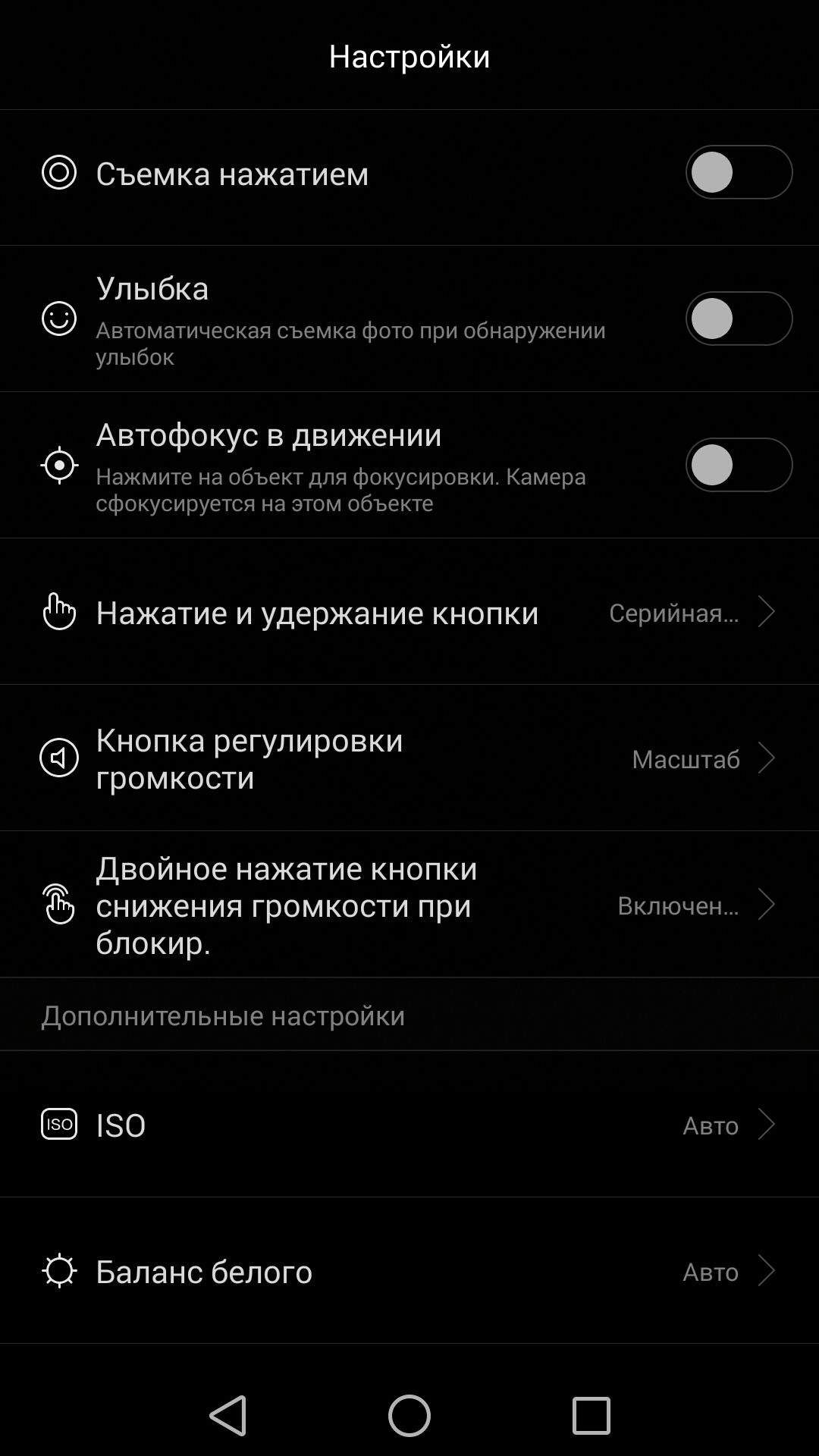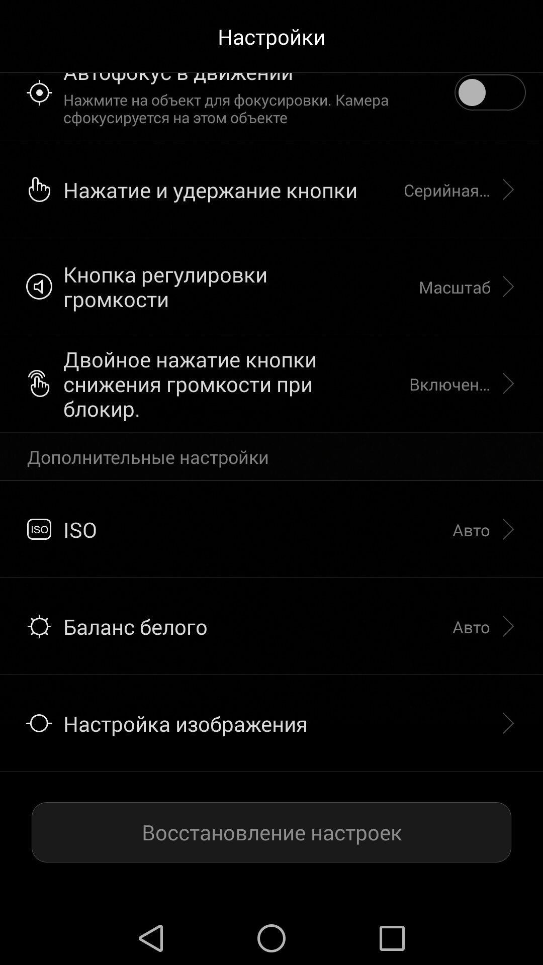 Настроить можно разрешение снимка, ISO, баланс белого, экспозицию, насыщенность, контраст и яркость. Есть возможность применить к изображению различные фильтры (применимо как к фото, так и к видео).