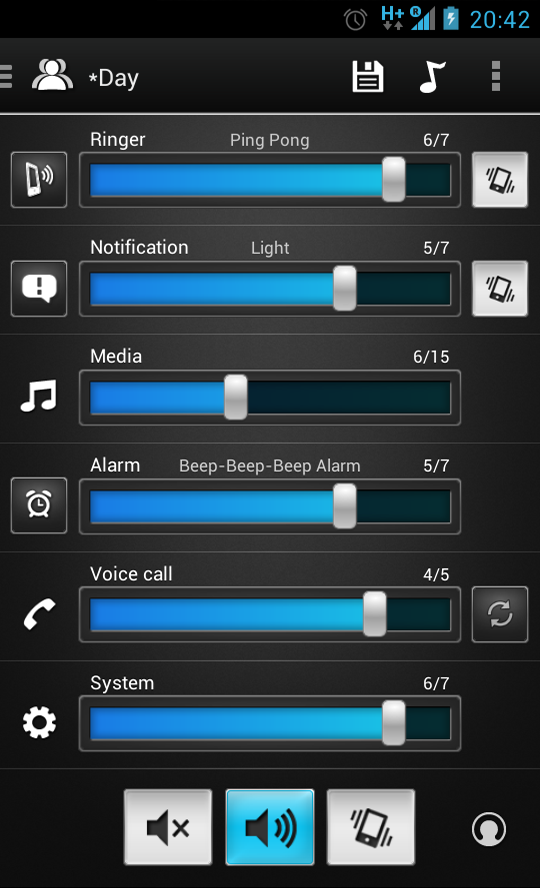 Именно то приложение по настройке звуков, которое вы искали. Во-первых, оно маленькое по размеру, что является огромным плюсом, особенно в сравнении с возможностями. Итак, во-вторых, несмотря на размер, столько возможностей, что просто ах! Итак: настройка звуков, отличный дизайн, виджет, настройка профилей, выбор мелодий и звуков, создание собственных профилей, переход между профилями в один клик или же по расписанию, установленному вами. Отличный функционал звукового сопровождения вашего смартфона.