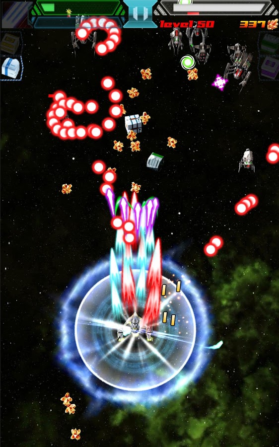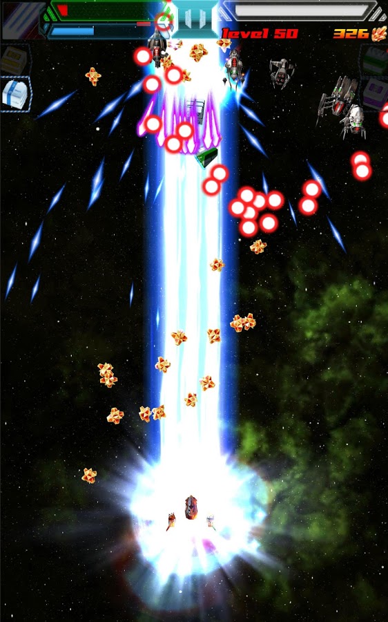 Великолепная андроид леталка, в которой использована графика 2,5D. Всего в игре сорок интересных уровней с различной ориентацией. Кроме того, ваша война будет проходить не по-обычному снизу-вверх. Вы также можете перемещаться по всему уровню, а ваши враги могут появится с любой из четырех сторон. В игре есть огромный магазин, где вы можете приобрести детали и улучшения для вашего корабля.