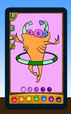 Это Веселый Разукрашка. Он потерял свои краски и кисти. Помоги Разукрашке раскрасить его картинки во все цвета радуги .Вы найдете прекрасную коллекцию рисунков смешных монстров в этой игре..