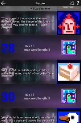 Spellpix - необходимо найти слова в письмах показанных на экране. Подключите буквы того же слова с помощью толстых горизонтальных или вертикальных цветных линий. Продемонстрируйте свою внимательность и знание слов в этой игре для Android. Существует сеть на экране и есть письмо в каждой ячейке этой сети. Кружки букв означают начало или окончание определенного слова. Найти слова, состоящие из 3 и более букв. Подключите их к цветной линии. Как только вы найдете все слова, вы увидите картину, сделанную из разноцветных линий.