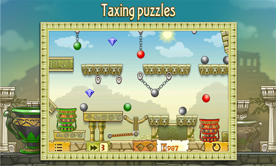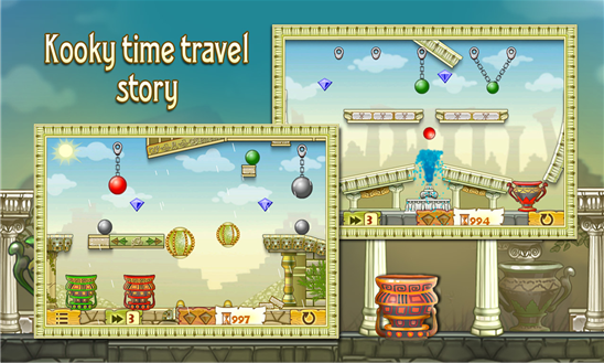 Вы будете помогать молодому ученому и его ручной обезьянке. Вам предстоит отправиться в головокружительное путешествие в различные эпохи. Вы побываете в римской империи, в гостях у воинственных викингах и у инков. Цель игры очень проста, вашей задачей здесь будет закатить шарик в урну того же цвета, для этого применяйте различные приспособления такие как цепи, веревки, стрелы, пушки и вулканы. По пути собирайте драгоценные бриллианты и артефакты, которые помогут вам вернуться домой.
