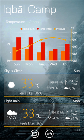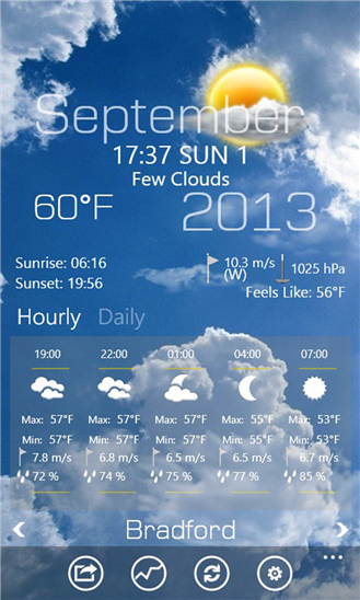 Приложение для windows phone, с помощью которого вы сможете посмотреть детальный прогноз погоды. Благодаря данным записанным из более чем 40 000 метеостанций, которые расположены по всему миру у вас всегда будет точный прогноз погоды на ближайшие дни.