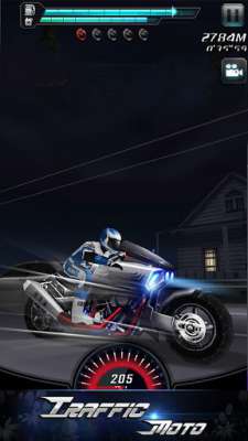 Traffic moto - управляйте скоростным мотоциклом и неситесь по ночным дорогам. Проезжайте через города и леса, мимо гор и снежных равнин. Объезжайте разнообразные препятствия и не столкнитесь с встречным транспортом на оживленных шоссе. Показывайте отличные результаты, зарабатывайте деньги и покупайте новые мотоциклы. Улучшайте Ваши мотоциклы и отправляйтесь покорять новые трассы. Проезжайте длинные туннели и мосты. Устанавливайте лучшее время прохождения трассы и поднимитесь на первые строки таблицы лидеров этой динамичной игры для Андроид.