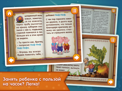 В сборнике с картинками и звуками представлены популярные русские и зарубежные сказки, которые можно почитать или послушать на ночь. В «Сказках Волшебного Леса» целых 8 чудо-книжек, которые можно приобрести: