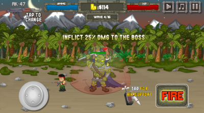 Геймплей в игре реализован на подобии аркадного шутера, где вам в пределах одного дисплея необходимо будет отстреливаться от надвигающихся на вас сил противника. Кстати одним огнестрельным оружием данная новинка неограниченна (пистолет, автомат, снайперская винтовка, дробовик, гранатомет, и пулемет), потому как подсобрав немного денег, для вас откроется возможность заказать себе в качестве поддержки два типа ракетных артобстрела, либо непродолжительный налет авиации.