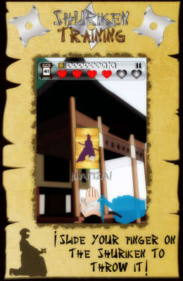 Shuriken training HD - тренируйтесь в метании сюрикенов. Наклоняйте Ваше устройство, чтобы отыскать цель и проведите по экрану, чтобы метнуть сюрикен в мишень. Станьте настоящим ниндзя в этой игре для Андроид. Вам необходимо много тренироваться, чтобы стать мастером. Бросайте сюрикены в бумажные мишени, на которых нарисованы враги. Не попадите в мишень с нарисованными мирными жителями. На экране будет появляться указатель, показывающий направление на следующую мишень. В случае промаха вы потеряете одну жизнь. Разблокируйте новые виды сюрикенов.