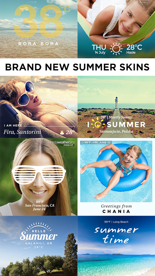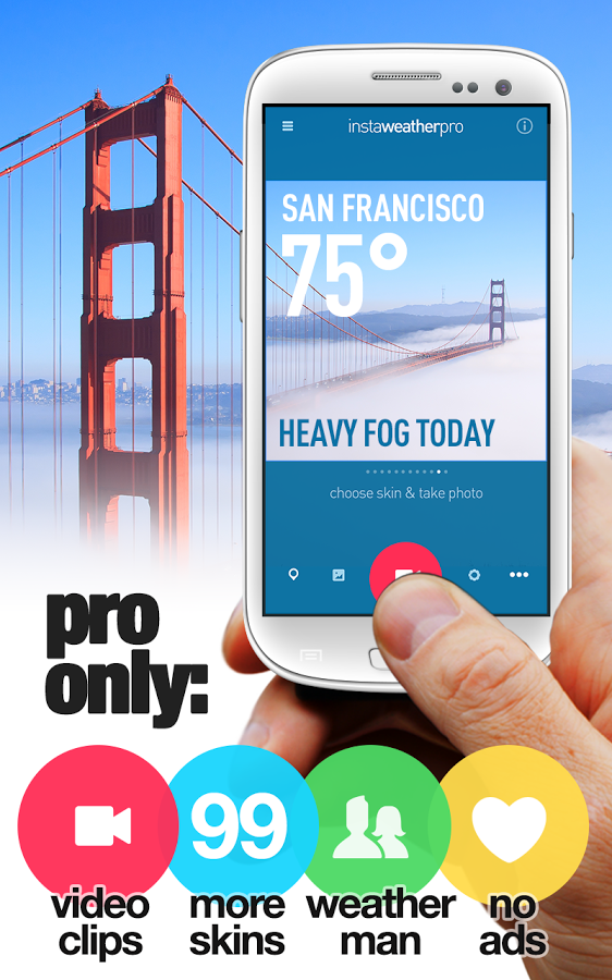 Приложение для андроид пользователей, которое не только информирует вас о погоде в месте вашего нахождения, но и позволит вам на полученную информацию наложить сделанное только что фото и отправить его через Instagram, сохранив все данные погоды и название места.