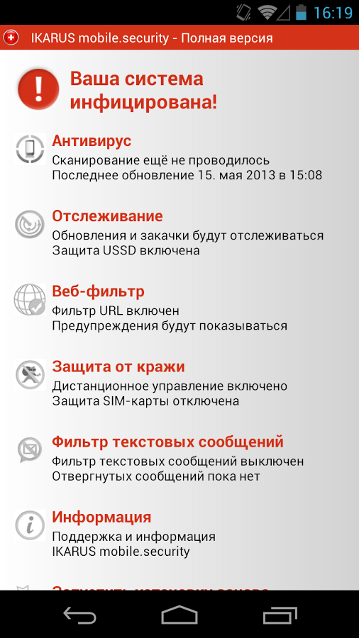 Отличное приложение на андроид от разработчика IKARUS Security Software для максимальной защиты вашего устройства от любого вредоносного программного обеспечения. Антивирус будет автоматически обновляться, проверять загружаемые файлы и установленные приложения. Так что с IKARUS mobile.security ваш смартфон находится под надежной защитой.