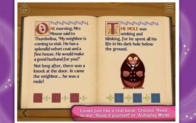 Сказка о Дюймовочке получает развитие от StoryToys в этом уникальной адаптации очаровательной сказки Ганса Христиана Андерсена о крошечной девочке ростом как большой палец. Ослепительные, полностью интерактивные всплывающие сцены, замечательная музыка и увлекательные анимации принесут сказку в жизнь. Откройте для себя удивительный мир Дюймовочки и примите участие в истории.