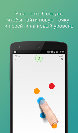 Вы должны запомнить все точки на экране, на каждом новом уровне добавляется новая точка. Вам нужно среди старых точек найти новую точку и нажать на нее. Чем дальше тем сложнее запомнить все точки