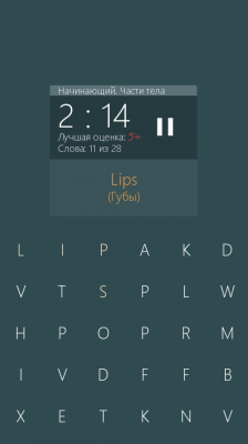 Развивающая игра для детей и взрослых, помогающая не только изучить английский язык, но и с удовольствием провести время. Суть игры проста — за определённое количество времени нужно вычеркнуть предлагаемые слова, найдя их в таблице. На выбор вам предлагается три уровня сложности, в зависимости от того, насколько вы хотите проверить свои силы в изучении английского языка. Изучение языка ещё никогда не было столь удобным, понятным и весёлым.