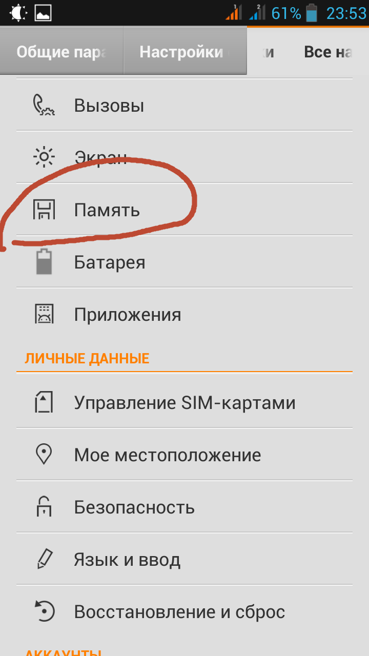 4. Переходим в раздел "Все настройки" и ищем там пункт "Память"