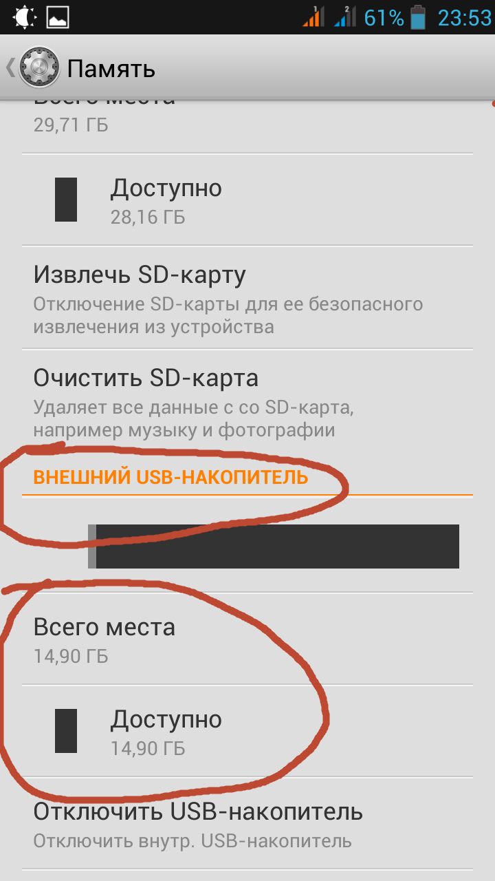 7. ОБЯЗАТЕЛЬНО отключаем USB-накопитель (флешку) через меню "Память" - "Отключить USB-накопитель"