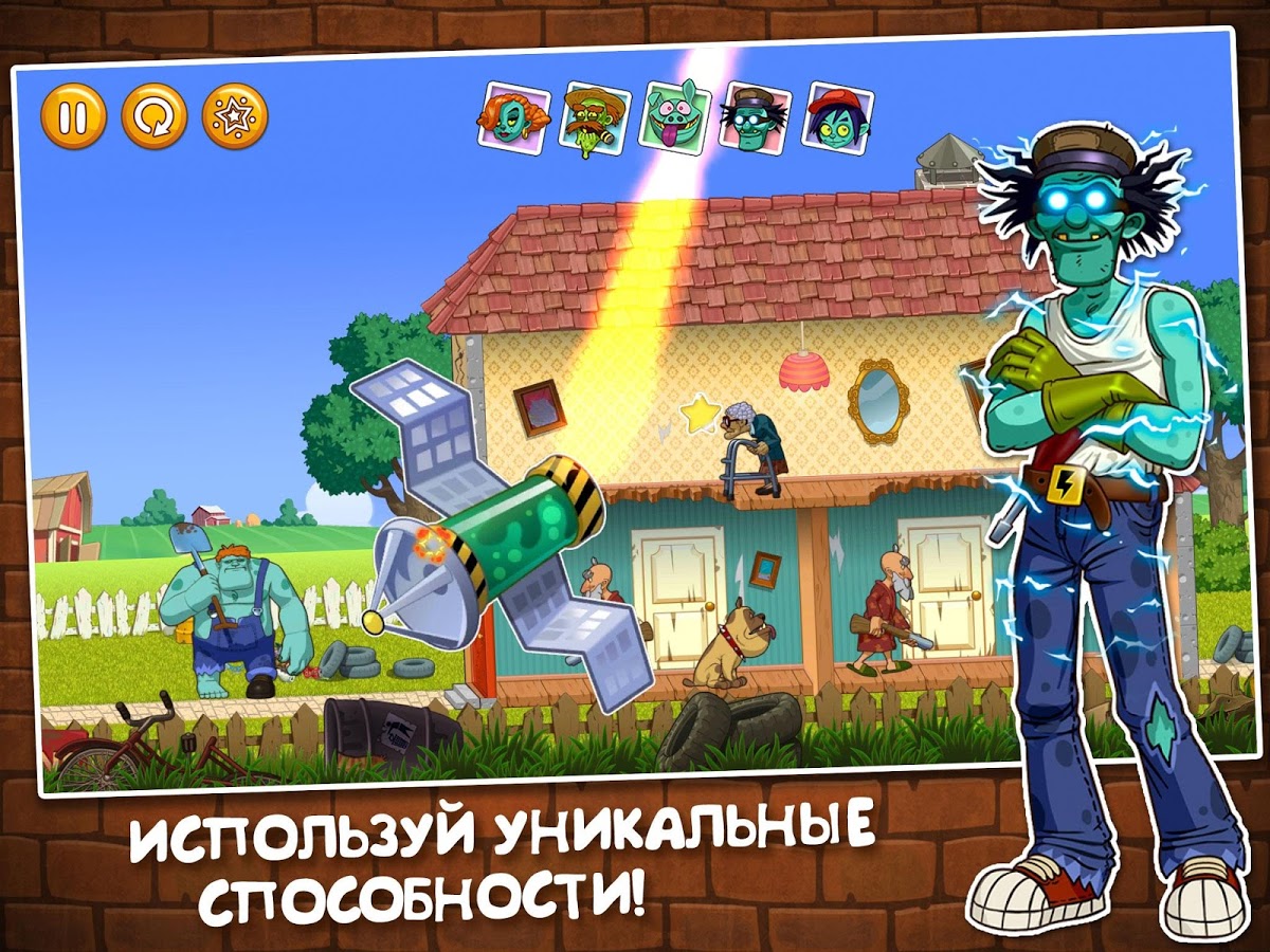 Игра на андроид, в которой спецслужбы похитили у семьи зомби их любимую дочь и они начинают мстить всем живым людям. Веселая головоломка, в которой вам предстоит кидать зомби с помощью лопаты в людей, после чего они обращаются в мертвецов. Рассчитывать силу удара и траекторию полета чтобы попасть точно в цель и преодолеть бесчисленные препятствия.