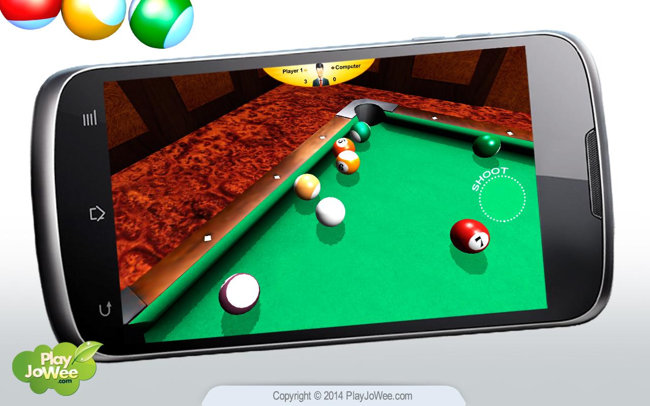 Очень качественный андроид бильярд с хорошо прорисованной трехмерной графикой. Вас ждет американский бильярд на восемь шаров. У вас есть возможность играть как в одиночную игру, так и вдвоем на одном устройстве. В игре отличная физика движения мяча, что даст вам возможность выполнять различные трюки.