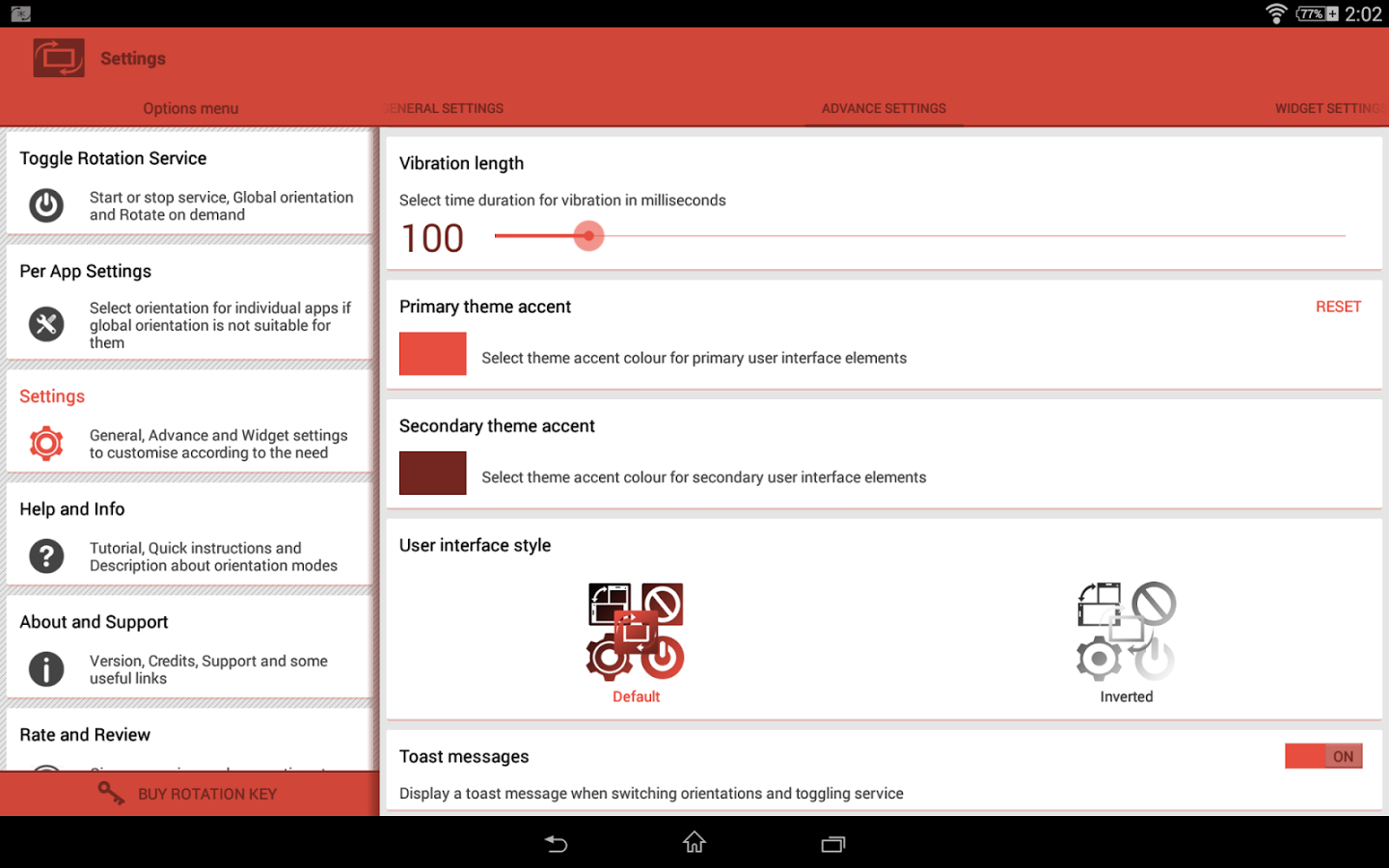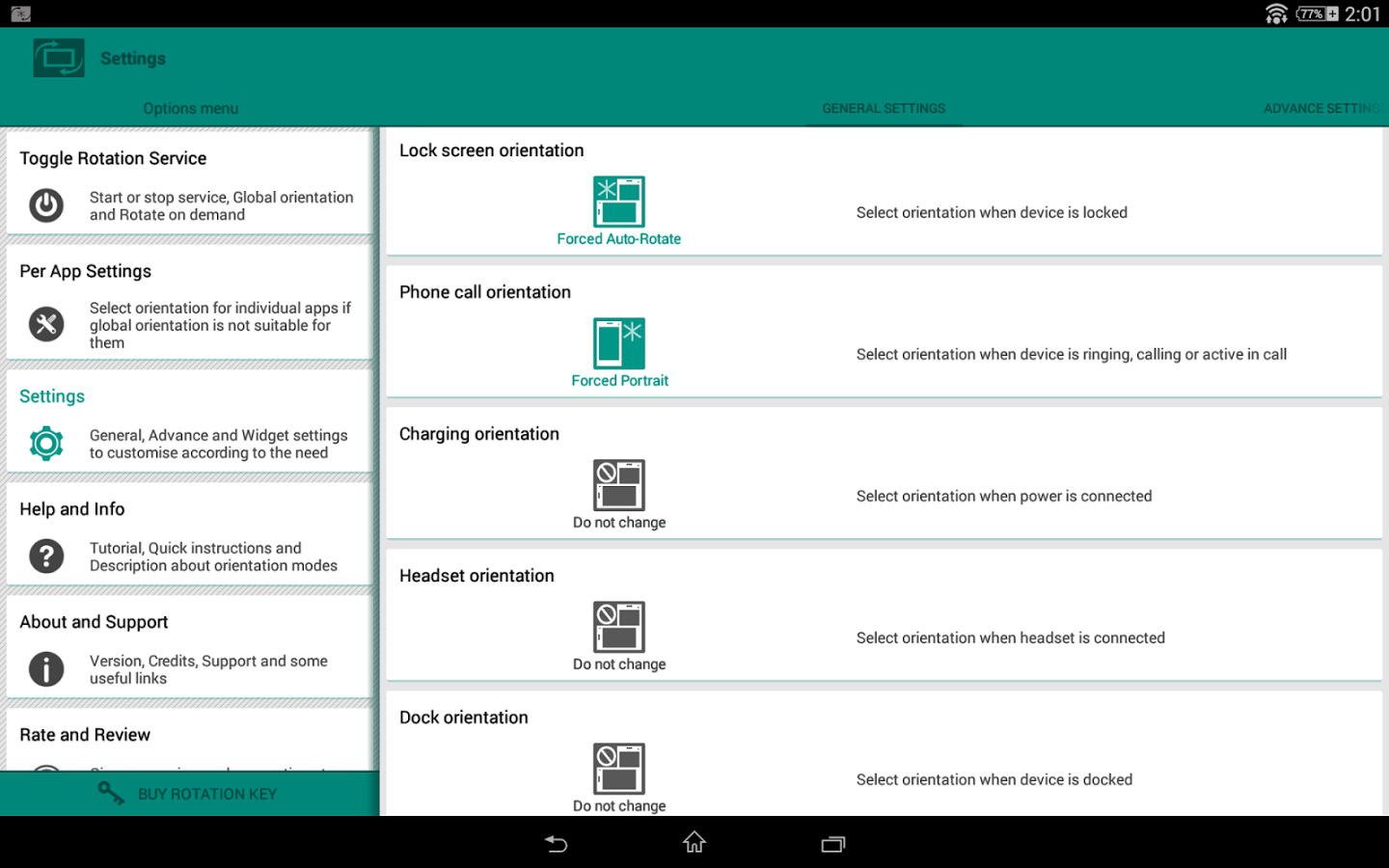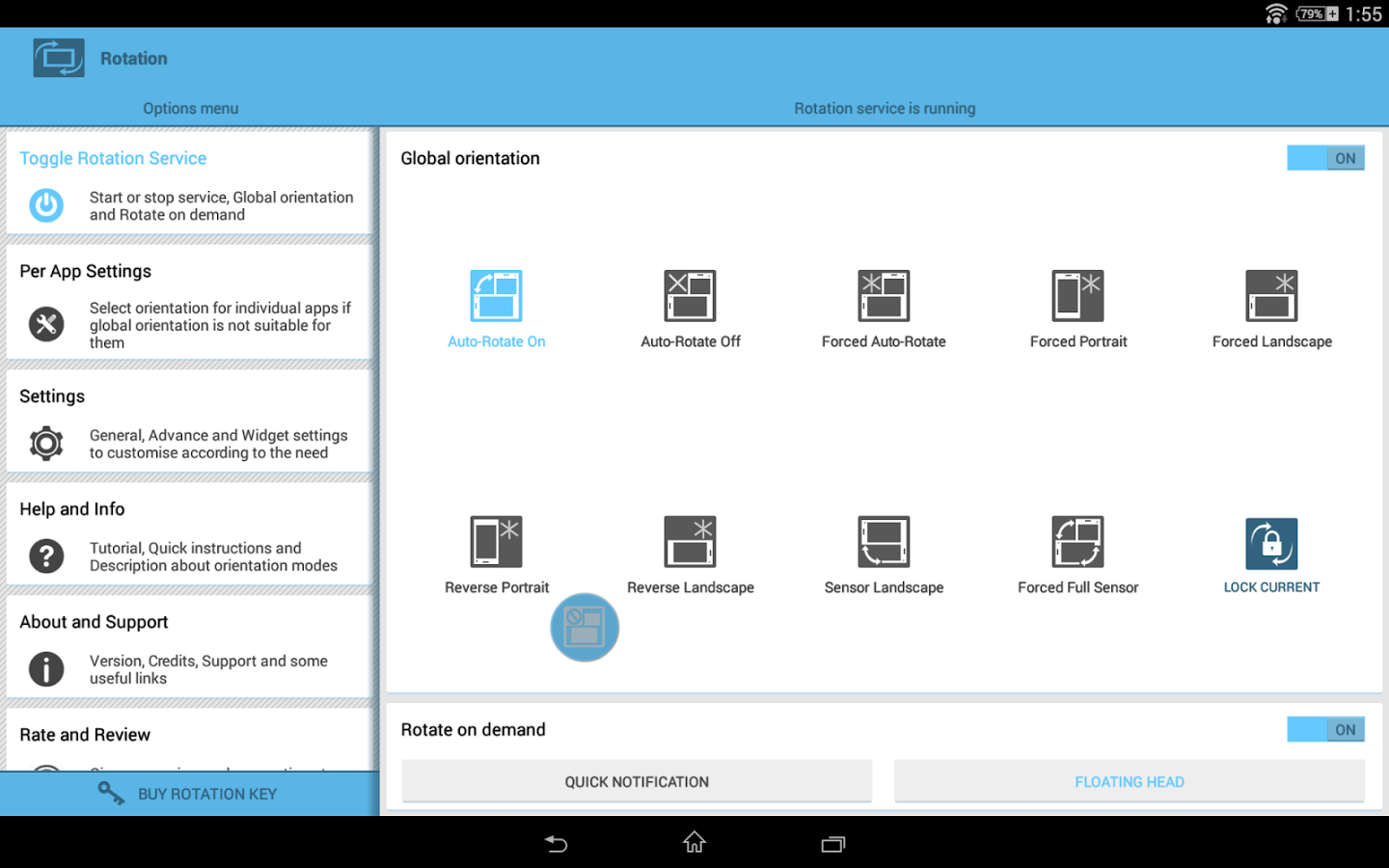 Отличный менеджер для ориентации экрана устройств, с большим количеством возможностей. С его помощью вы можете установить такие режимы как: вращение по требованию, принудительный автоматический поворот, блокировка текущей ориентации и многие другие. Так же стоит отметить, что Rotation - Orientation Manager содержит настройки приложения, уведомления, виджеты и даже учебник, содержащий подробную информацию о режимах ориентации.