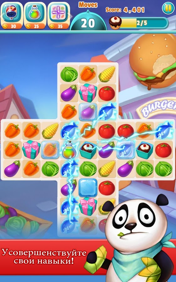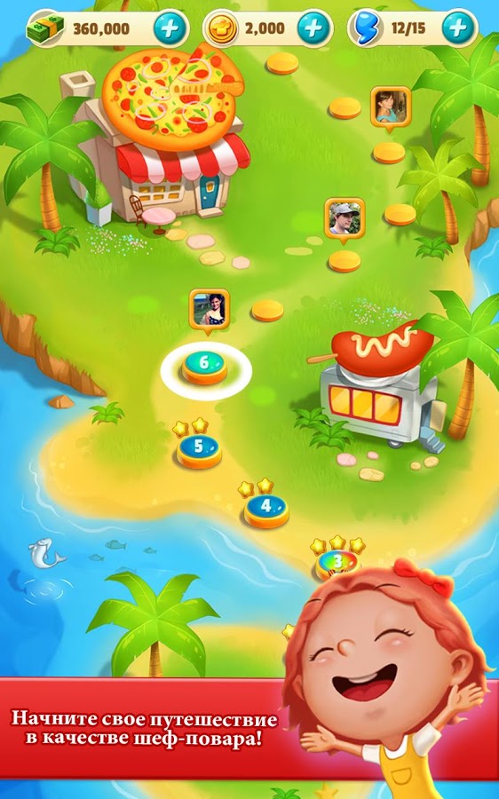 - Улучшайте свои навыки готовки, чтобы пройти самые сложные уровни