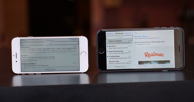 Экраны новых iPhone были сильно увеличены в размерах по сравнению с предыдущими моделями. Это бросается в глаза, когда берешь в руки iPhone 6, и, наверное, шокирует, когда iPhone 6 Plus лопатой ложится на пальцы. Неловкое «кхмммм-хмм» быстро меняет удивление — качество дисплее и картинки на них на голову выше, чем в iPhone 5s.