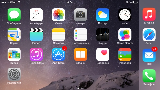 В отличие от других производителей больших смартфонов в Apple неплохо справились с задачей сделать их более удобными. Пока конкуренты внедряют в интерфейсы сложные схемы управления большими экранами, в Купертино просто добавляют одну, но полезную функцию. Двойной тап (не нажатие) по кнопке Home опускает весь интерфейс любого приложения так, чтобы вы дотянулись один пальцем до статус-бара. Просто и удобно.