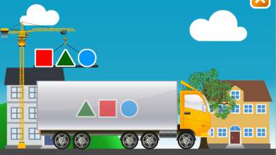● Загрузи машинку – на подъемном кране стоят три геометрические фигуры. Ребенку нужно перетащить эти фигуры в подъехавшую машину, каждую фигуру в свою ячейку. Когда задание выполнено, машина уезжает. В мини-игре несколько видов машин и пейзажей.