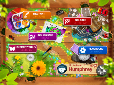 Bug Art предлагает целый набор различных развлечений, самым простым из которых является простое рисование. Что нарисовать? Ну это уж вопрос вашей фантазии, воплощать в жизнь которую предстоит при помощи пары кистей, маркера, карандаша и богатой цветовой палитры. Ещё в вашем арсенале будет, конечно же, ластик и набор разнообразных стикиров. Если рисовать на обычном белом листе покажется скучном, то можно выбрать один из предложенный фонов и нарисовать, к примеру, сказочную сценку на фоне замка. Также можно заняться раскрашиванием насекомых и тут тоже фантазия юных художников ничем не ограничена, да и взрослым может показаться интересным раскрашивать жучков и бабочек на свой вкус. Когда рисунок будет закончен, его можно буквально оживить, и нарисованная вами только что божья коровка начнёт радостно ползать за вашим пальцем по экрану, что приводит юных художников в восторг. Эти же насекомые могут поучаствовать в крошечных мини-играх, также присутствующих здесь. Одна игра - на внимательность, на локацию выбежит множество букашек и спрячет в цветах жемчужины, их то вам и предстоит искать порхая бабочкой над цветками. Другая игра предлагает нам небольшую гонку, этакие тараканьи бега, только участвовать будут все лесные насекомые, их предстоит обогнать нажимая поочередно две кнопки по разным сторонам экрана.