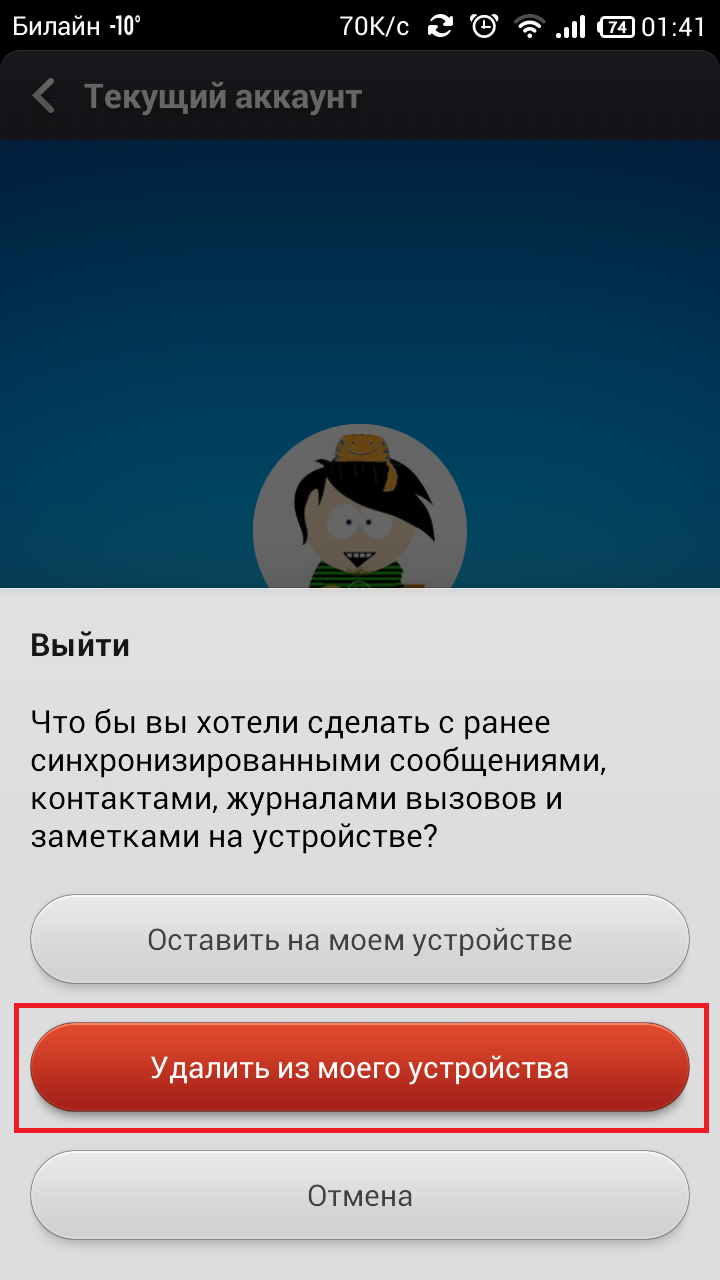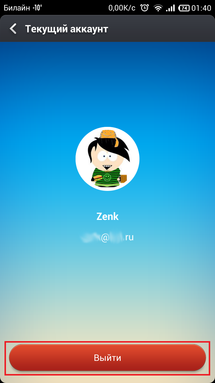 - Далее нажмите на имя вашей учетной записи и нажмите Выйти